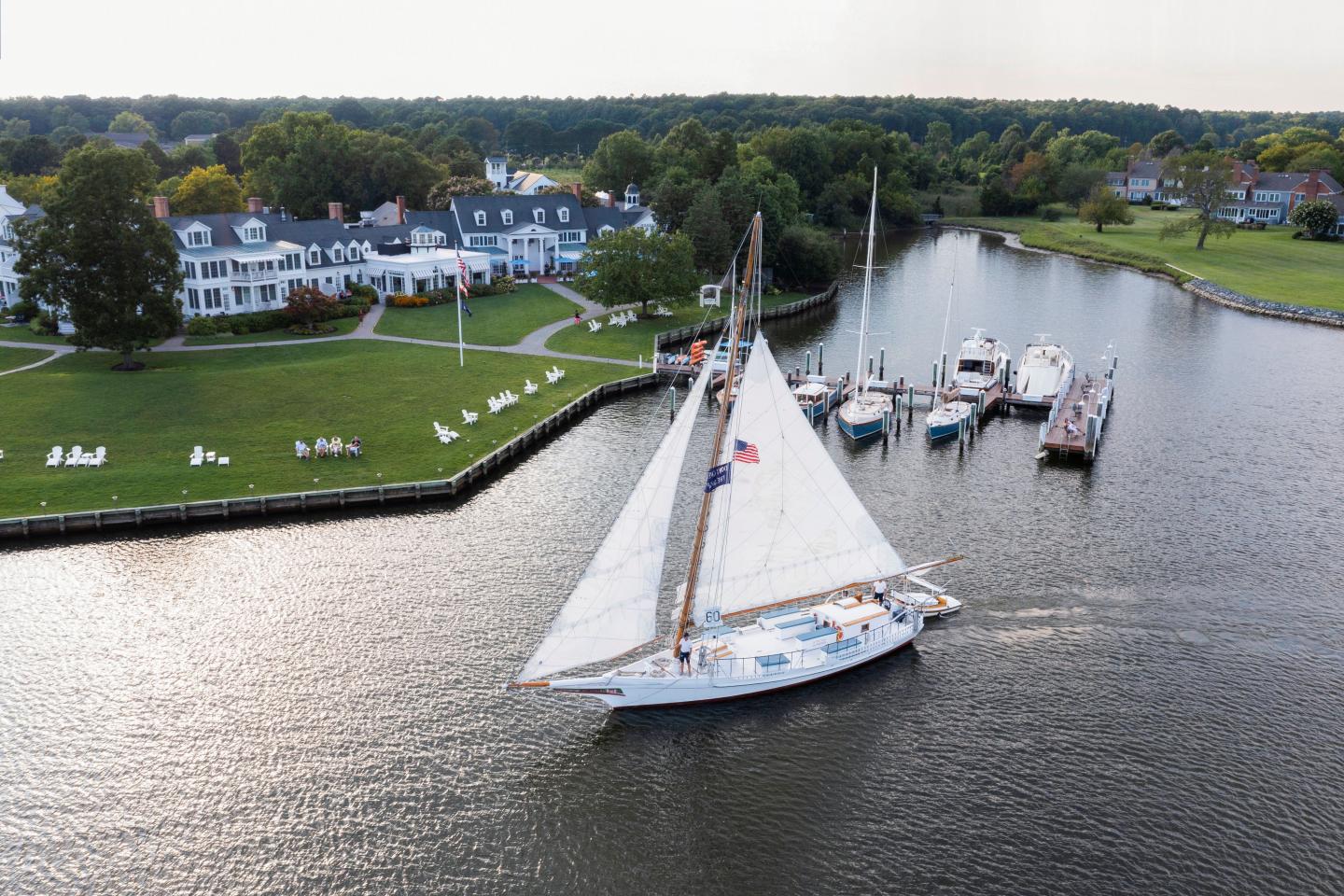Uncover the magic of St. Michaels, Maryland, at the Inn at Perry Cabin, nestled along the serene banks of the Miles River. Whether you're motoring the bay, savoring a cocktail during a scenic sail, or enjoying a peaceful game of tennis, our luxurious Eastern Shore resort has something for everyone.